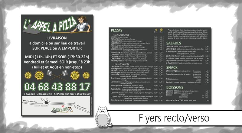 Nous nous occupons de la création de votre identité visuelle : logo, pictogramme, charte graphique,... Ainsi que de la déclinaison de tous vos visuels pour vos impressions : flyers, cartes de visite, dépliants, menus, pochettes à rabat, affiches...
